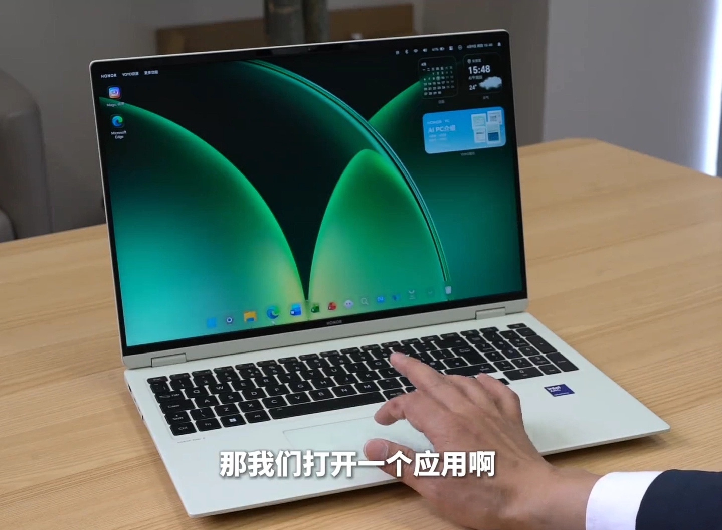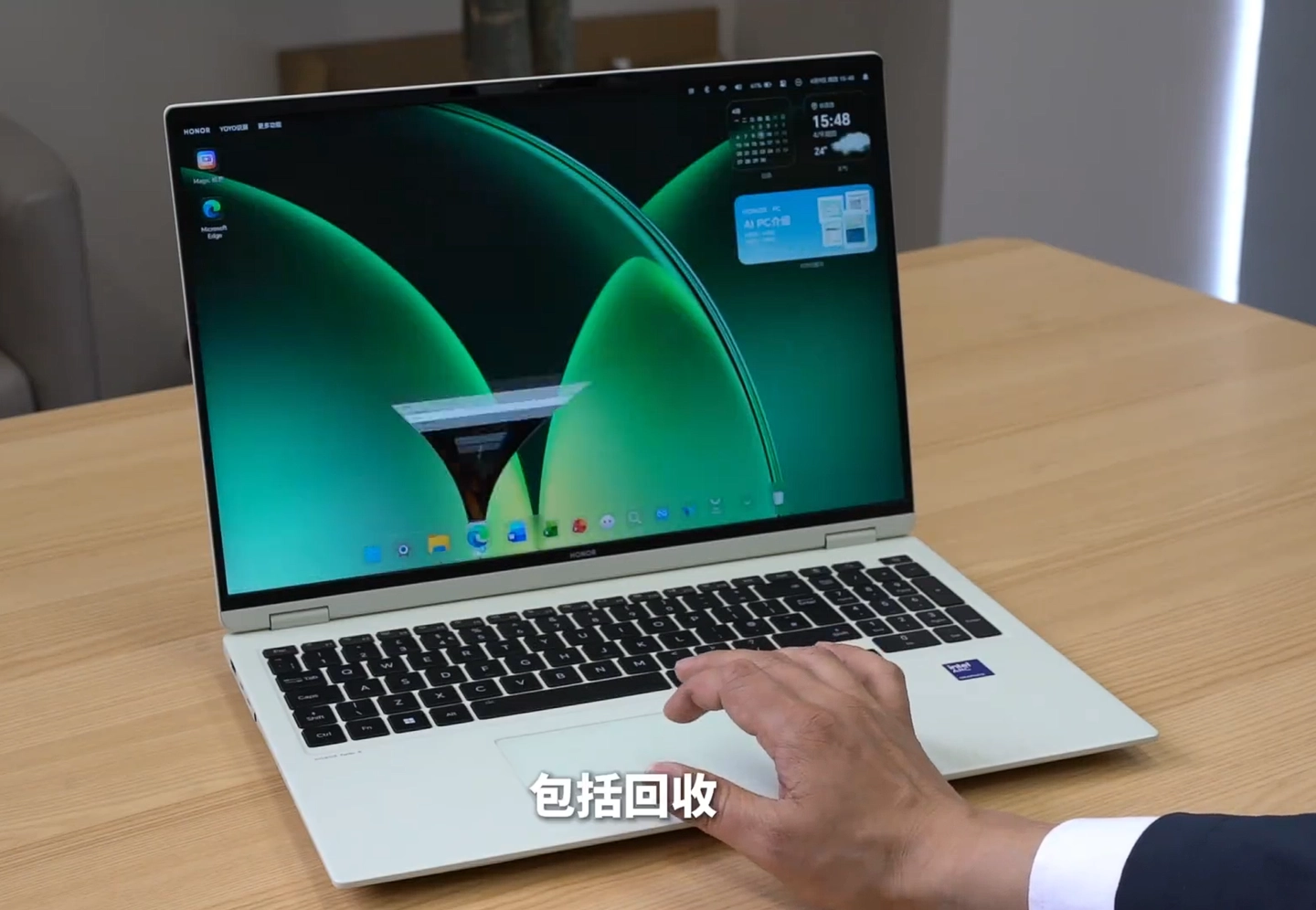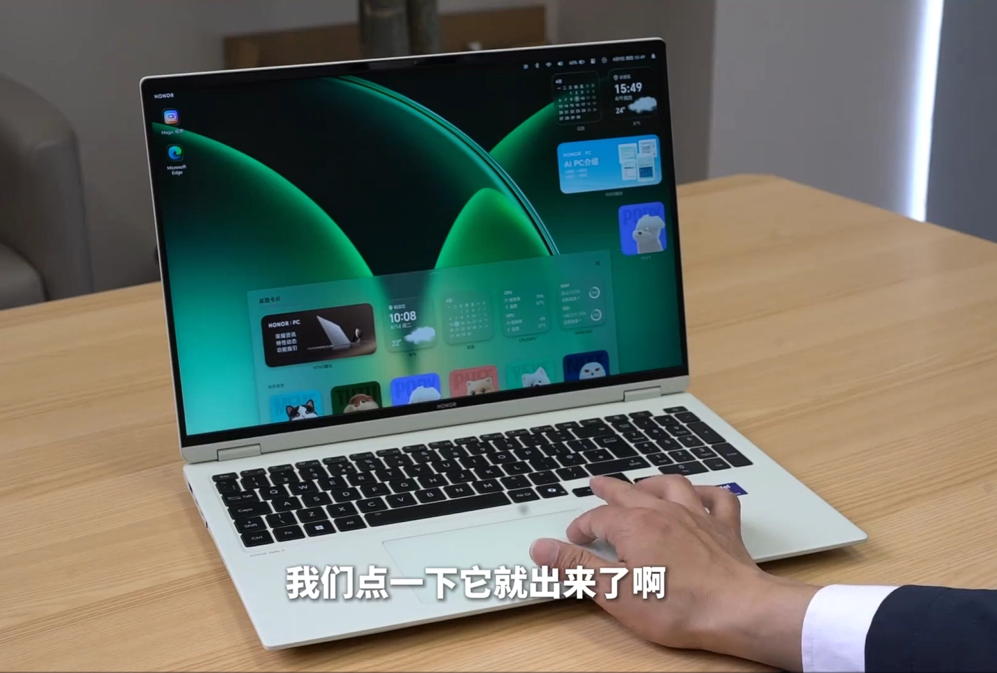 软件方面,该系列机型预装有“Magic 视界”界面,开启后整体看起来更像是苹果 macOS,底部拥有程序坞,最小化、最大化的动画也类似隔壁的“神奇效果”,也可以在桌面上添加 widget 小组件,感觉和传统的 Windows 完全不一样。
